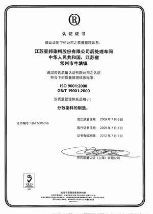 6月15-17號,英國勞氏上海辦事處審核組對江蘇亞邦染料股份有限公司后處理車間建立的ISO9001:2000和ISO14001:2004兩個體系進行繼4月22號第一階段審核合格后的第二階段即現場階段的審核。